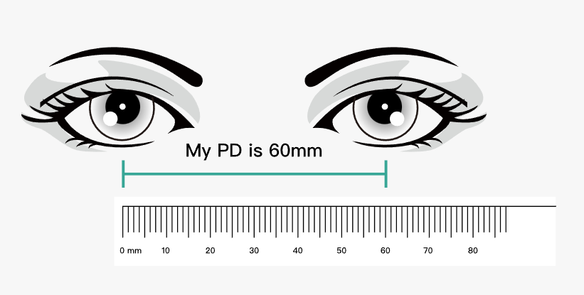 Pupillary Distance (PD), is the distance between the center of one pupil to the center of the other pupil, measured in millimeters. This number is usually on your prescription given to you by your doctor, but if, for some reason, you don’t have it, it is easy to measure yourself.